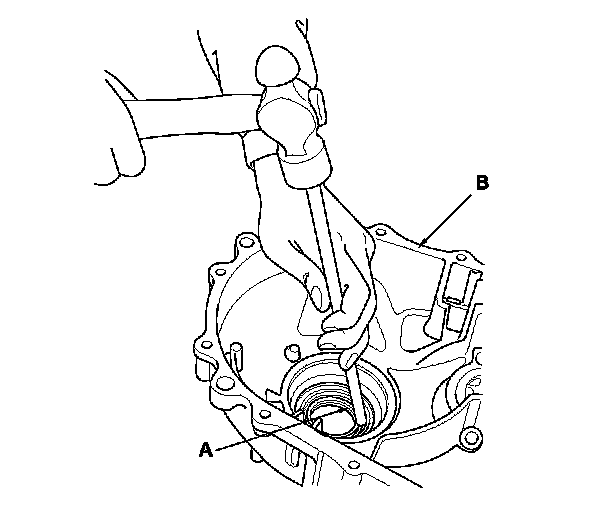 1. Remove the oil seal (A) from the transmission housing (B).