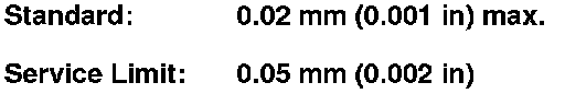 2. Inspect the runout by supporting both ends of the mainshaft. Rotate the mainshaft two complete turns while measuring with a dial gauge. If the runout exceeds the service limit, replace the mainshaft.