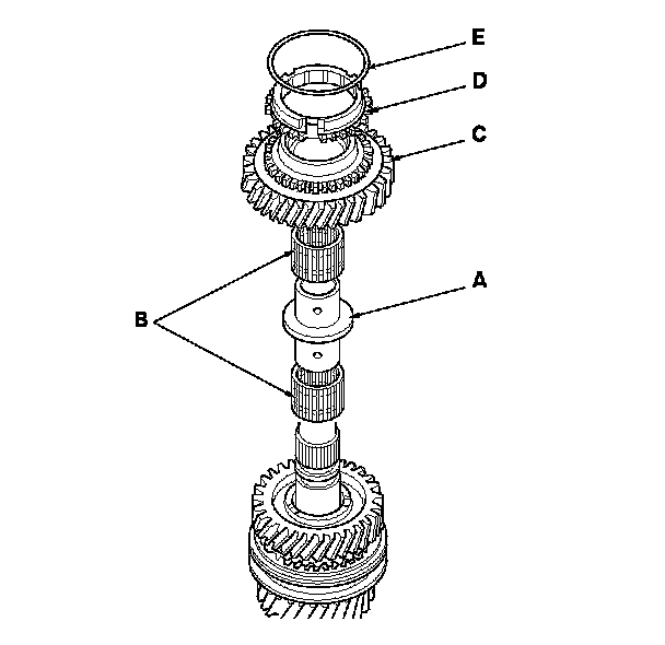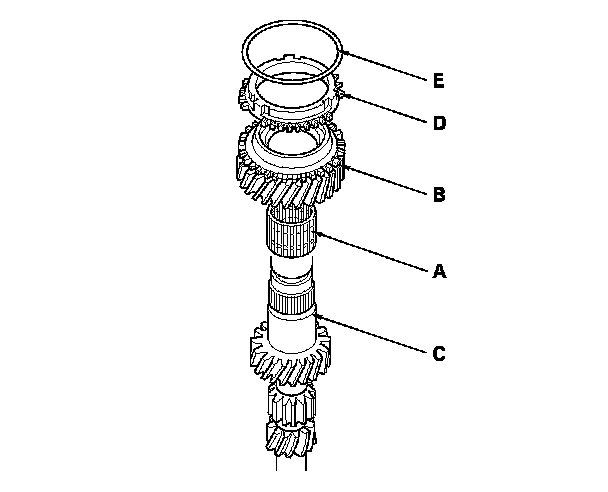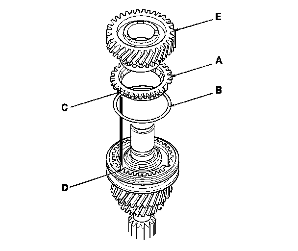 3. Install the synchro ring (D) with the synchro spring (E) onto 3rd gear.