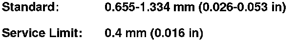 9. Measure the clearance between each gear (A) and its synchro ring (B) all around the gear. Hold the synchro ring against the gear evenly while measuring the clearance. If the clearance is less than the service limit, replace the synchro ring and gear.