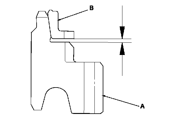 5. Inspect the thrust surface (B) on each gear hub for wear.