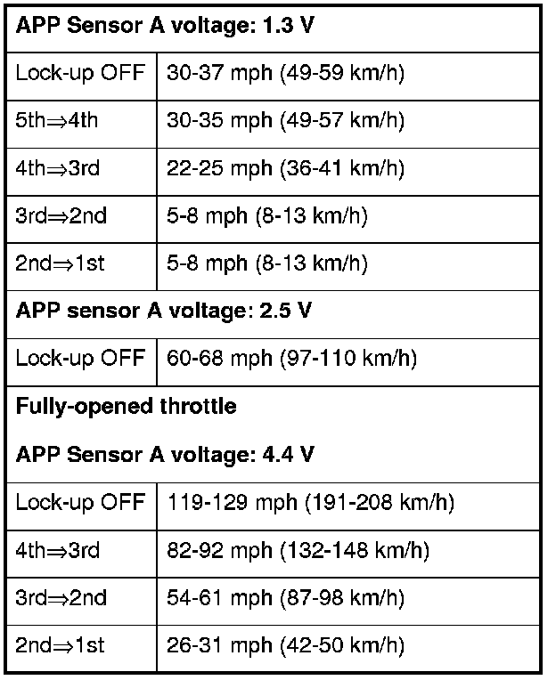 9. Monitor the HDS and accelerate quickly until APP Sensor A reads 1.3 V. Maintain a steady throttle until the transmission shifts to 5th gear, then slow the vehicle and come to a stop.