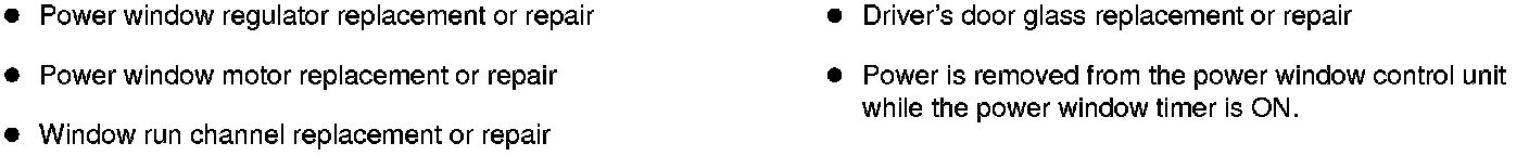 13. Confirm that the power window control unit is reset by using the driver's window AUTO UP and AUTO DOWN functions.