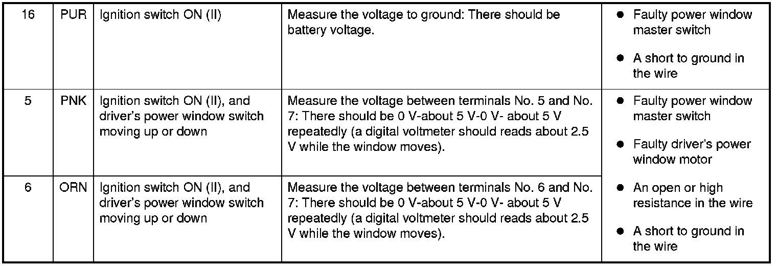Power Window Master Switch Input Test (4-Door, Except DX Models)