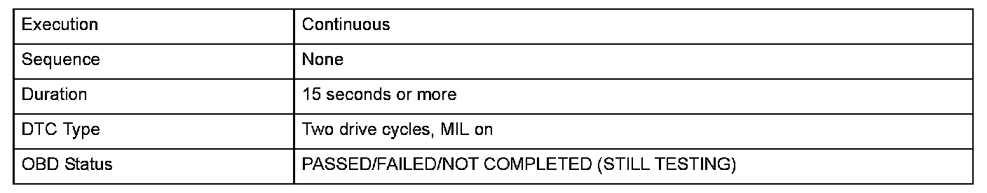 Monitor Execution, Sequence, Duration, DTC Type, OBD Status