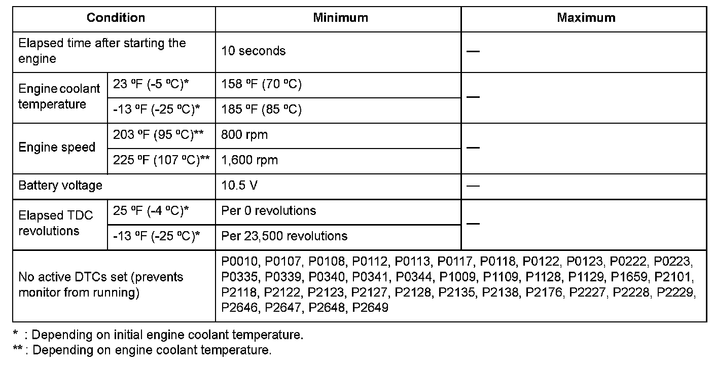 Conditions for setting the DTC