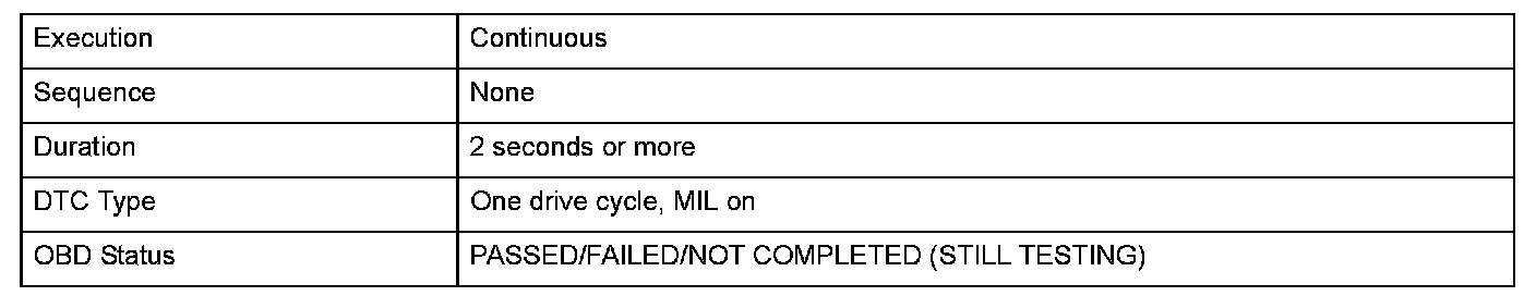 Monitor Execution, Sequence, Duration, DTC Type, OBD Status