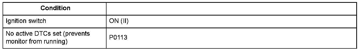 The IAT sensor output voltage is 0.08 V or less for at least 2.0 seconds.