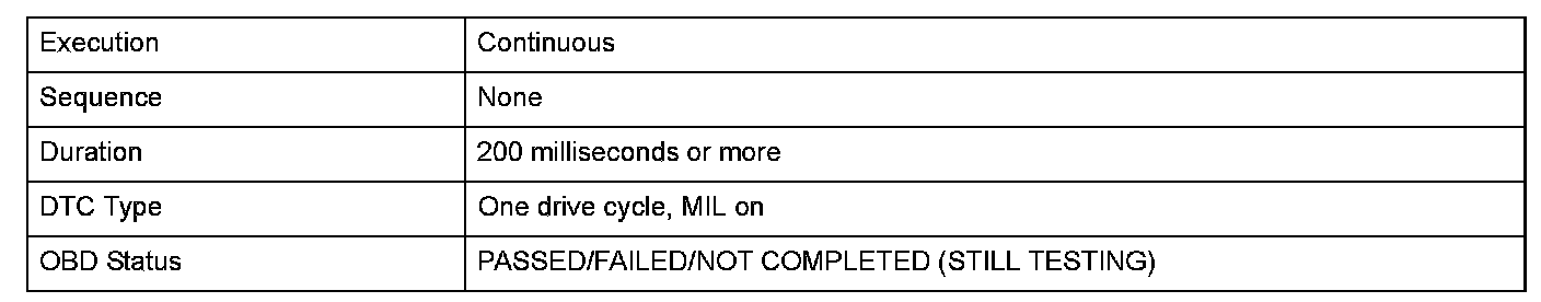 Monitor Execution, Sequence, Duration, DTC Type, OBD Status