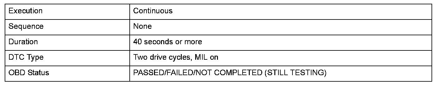 Monitor Execution, Sequence, Duration, DTC Type, OBD Status