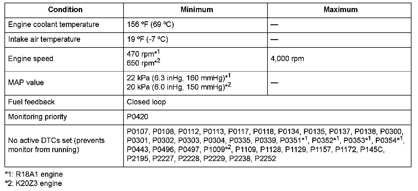 Monitor Execution, Sequence, Duration, DTC Type, OBD Status