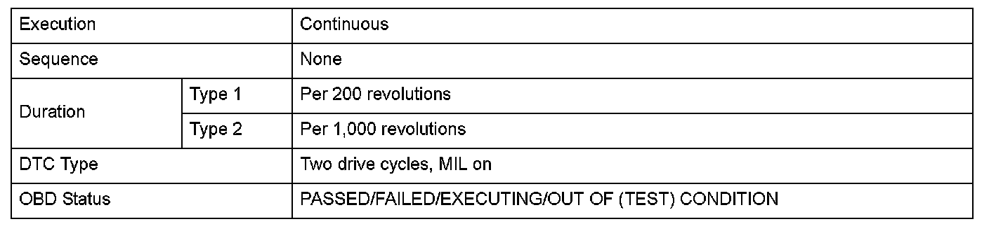 - 80 drive cycles, regardless of driving conditions, are completed with no misfire detected.