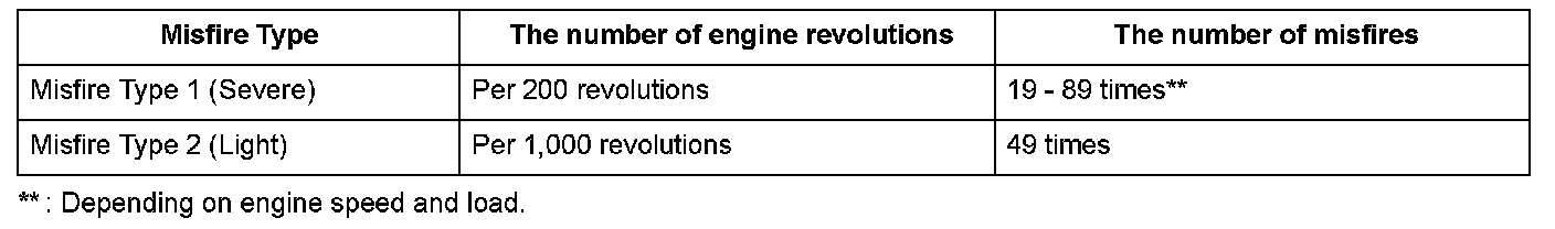 Type 2: When the number of misfires per 1,000 engine revolutions reaches the level that affects FTP mode exhaust emissions, a DTC is stored and the MIL comes on.