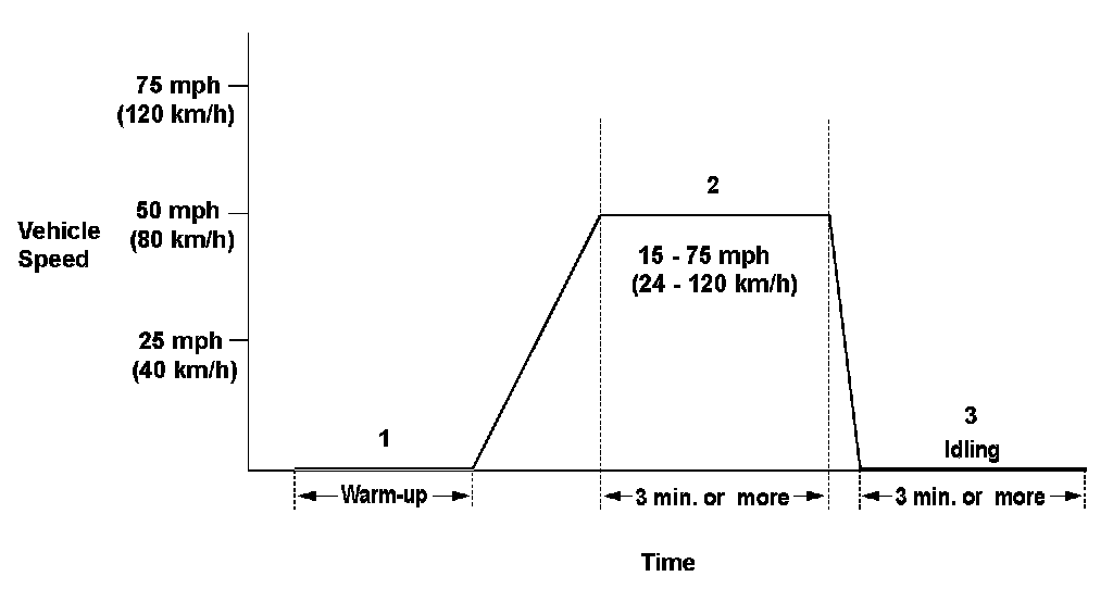 2. Drive the vehicle at a speed between 15 - 75 mph (24 - 120 km/h) for at least 3 minutes.
