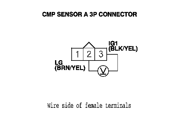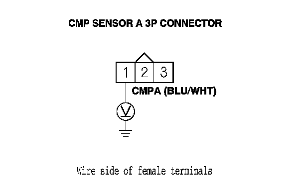 9. Measure the voltage between CMP sensor A 3P connector terminal No. 1 and body ground.