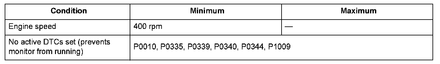 - The gap between the position of the CMP sensor A pulse and the middle of the CMP sensor A assembly is 10° or more for at least 5 seconds. Engine running, VTC active