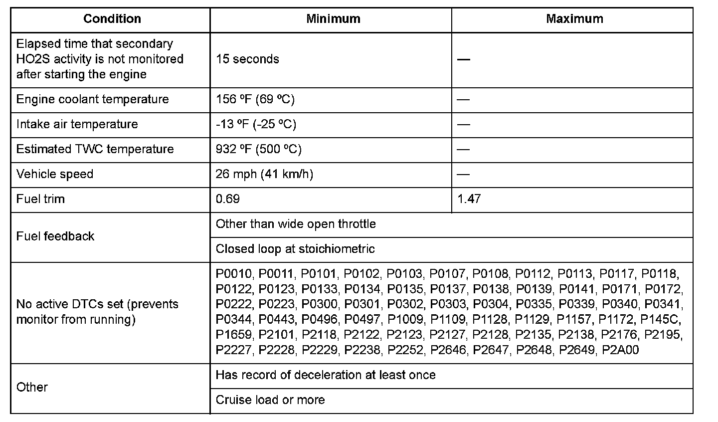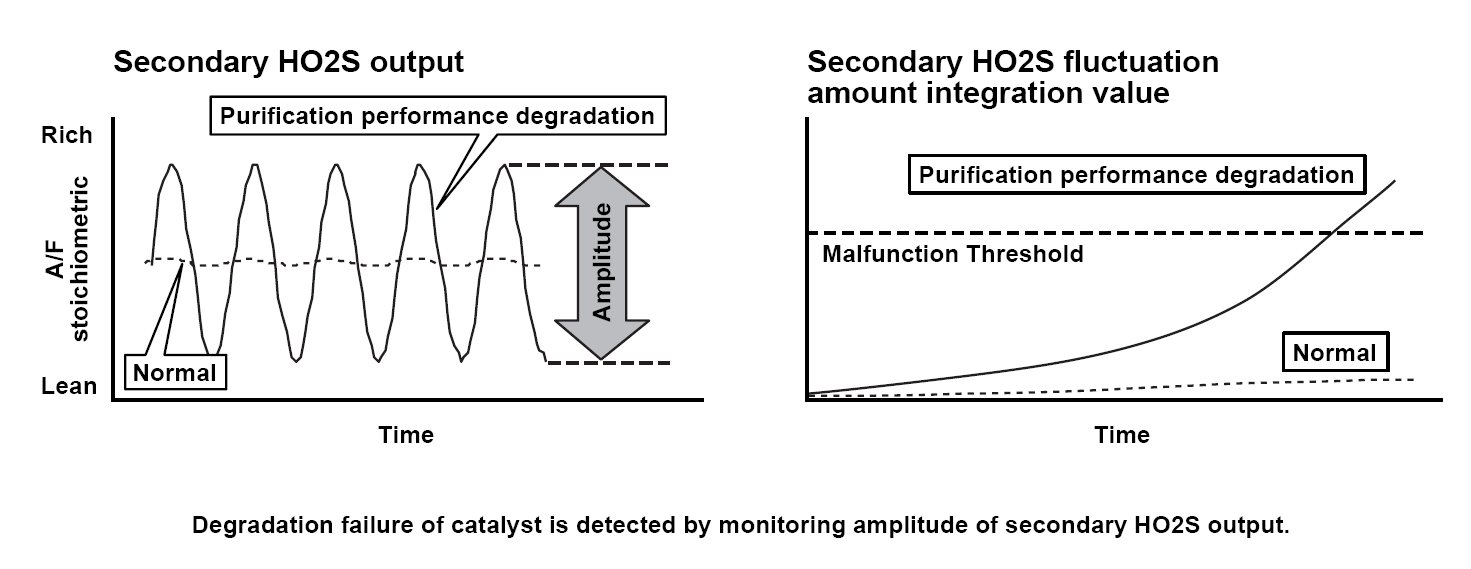 The secondary HO2S fluctuation integration value is 3.3 V or more for at least 9.5 seconds.