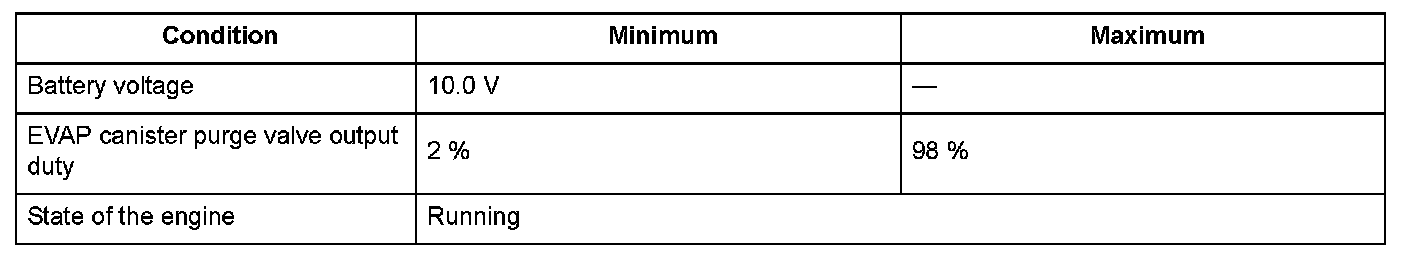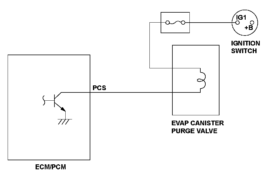 The evaporative emission (EVAP) canister purge valve is attached to the vacuum port between the intake manifold and the EVAP canister. The engine control module (ECM)/powertrain control module (PCM) does not turn on the EVAP canister purge valve when the engine coolant temperature is less than a specified value. The ECM/PCM adjusts the amount of fuel vapor sent to the engine by controlling the EVAP canister purge valve duty cycle. When the return signal does not change according to the EVAP canister purge valve output for a set time, the ECM/PCM detects a malfunction and stores a DTC.