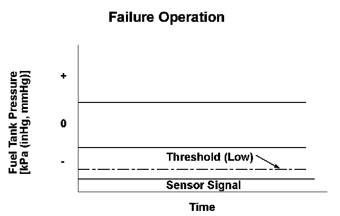 The output from the FTP sensor is less than -8 kPa (-2.2 inHg, -55 mmHg) for at least 3.0 seconds.