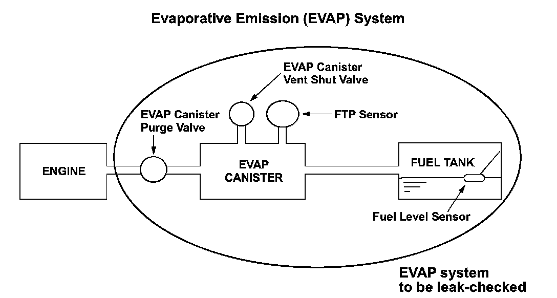 The evaporative emission (EVAP) leak detection system uses an engine off natural vacuum (EONV) method. The EONV method detects leakage from the change in fuel tank pressure via the fuel tank pressure (FTP) sensor with the engine off.