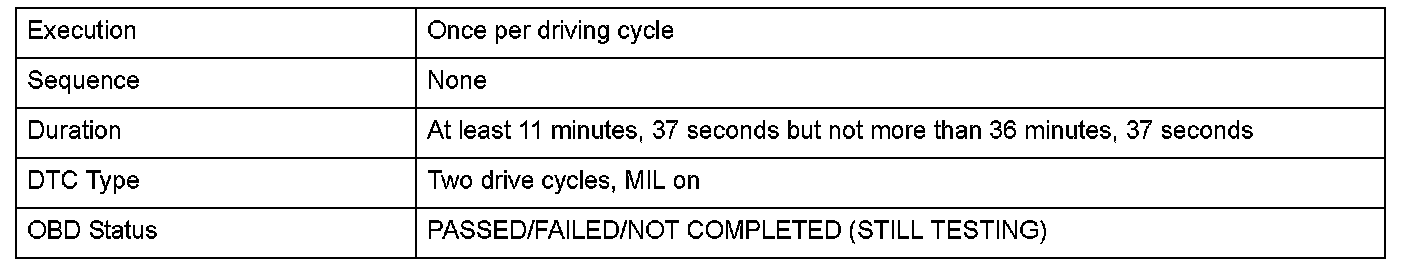 Monitor Execution, Sequence, Duration, DTC Type, OBD Status