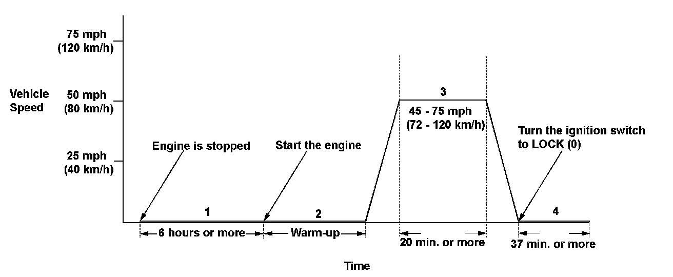 3. Drive the vehicle immediately at a speed between 45 - 75 mph (72 - 120 km/h) for at least 20 minutes.