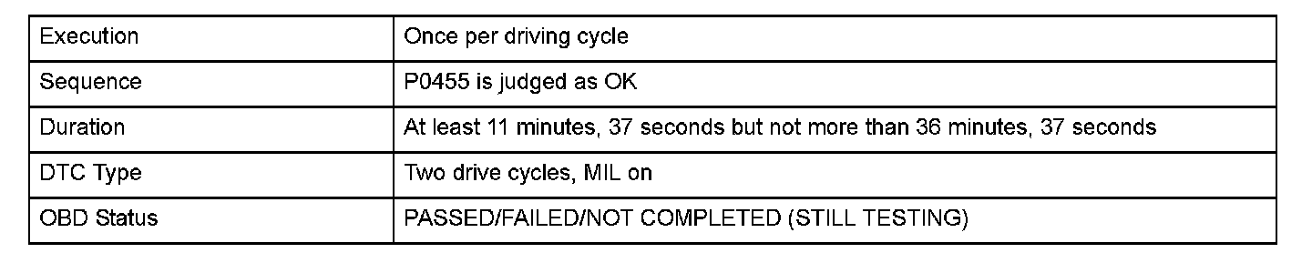 - If the variation of the pressure is a specified value and continues for a specified duration, it is identified as a "0.09 inch leak" and the diagnosis completes.