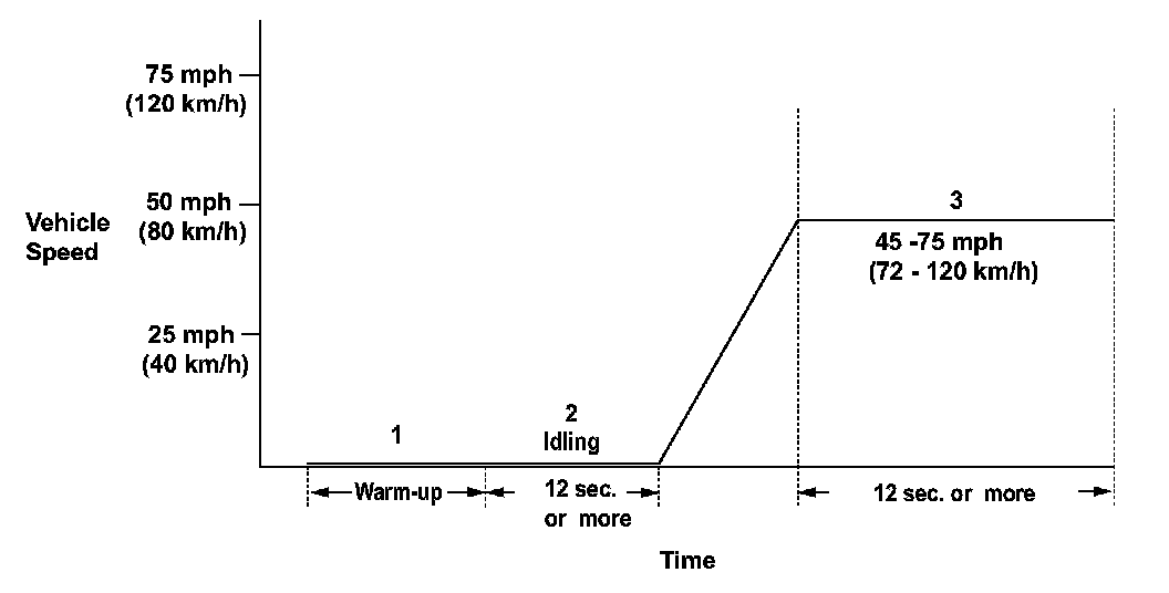 3. Drive the vehicle immediately at a speed between 45 - 75 mph (72 - 120 km/h) for at least 12 seconds.