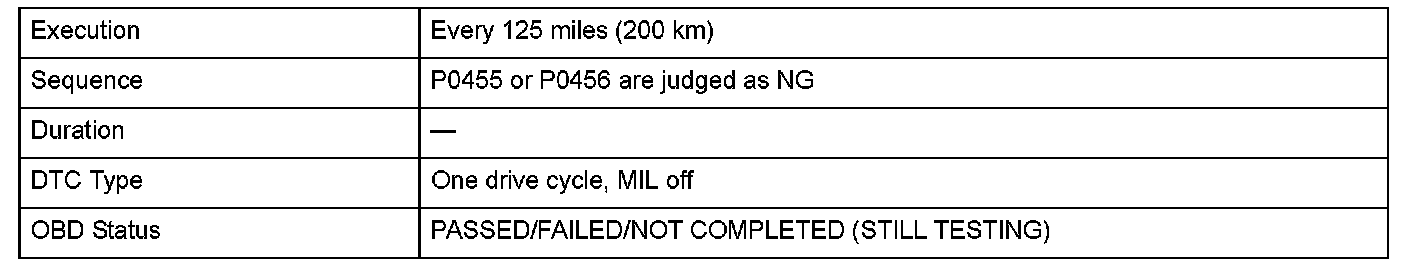 When a malfunction is detected in a certain drive cycle and a malfunction of 0.02 inch leak is detected in the same drive cycle, and DTC P0456 is stored, a Pending DTC, a Confirmed DTC, and the freeze data are stored in the ECM/PCM memory. The MIL does not come on.