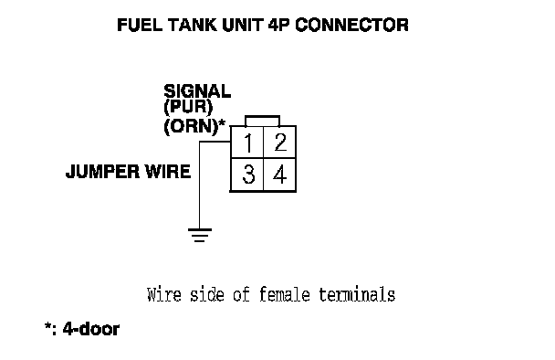 15. Connect fuel tank unit 4P connector terminal No. 1 to body ground with a jumper wire.
