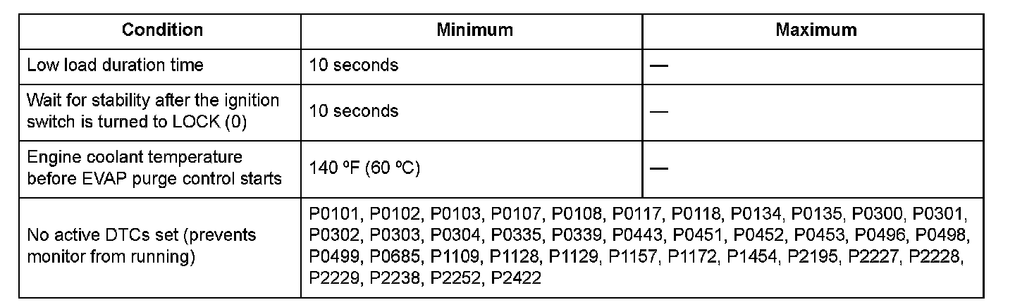 The output from the FTP sensor is 0.2 kPa (0.07 inHg, 2 mmHg) or less for at least 10 seconds.