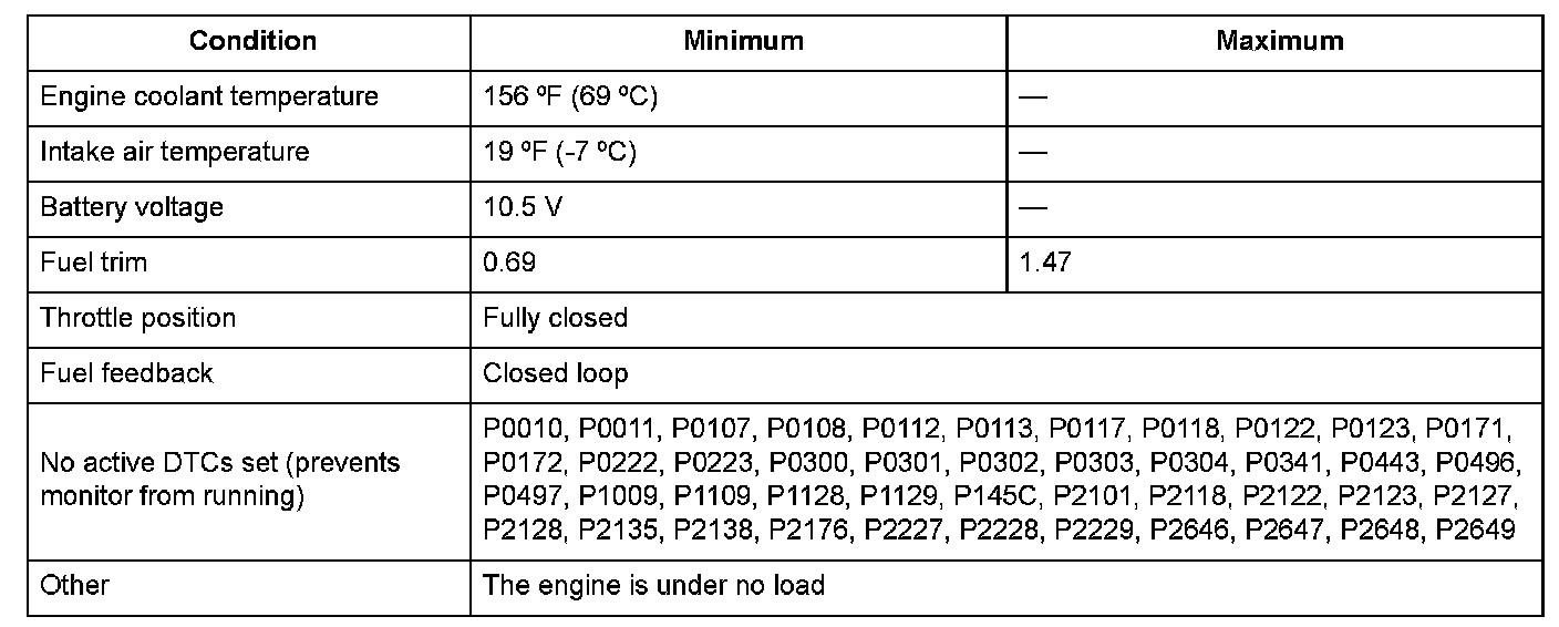 The actual idle speed is 100 rpm less than the target idle speed for at least 20 seconds.