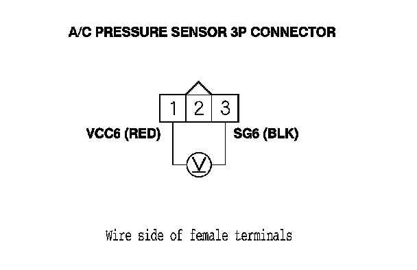 9. Measure the voltage between A/C pressure sensor 3P connector terminals No. 1 and No. 3.