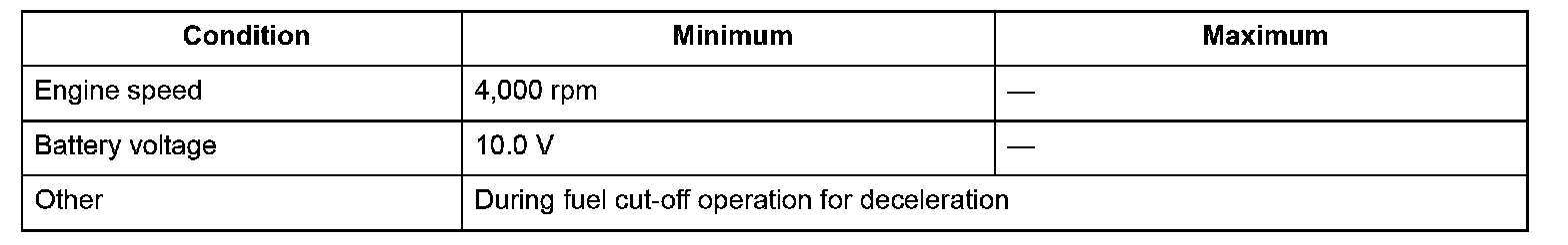 Conditions for setting the DTC