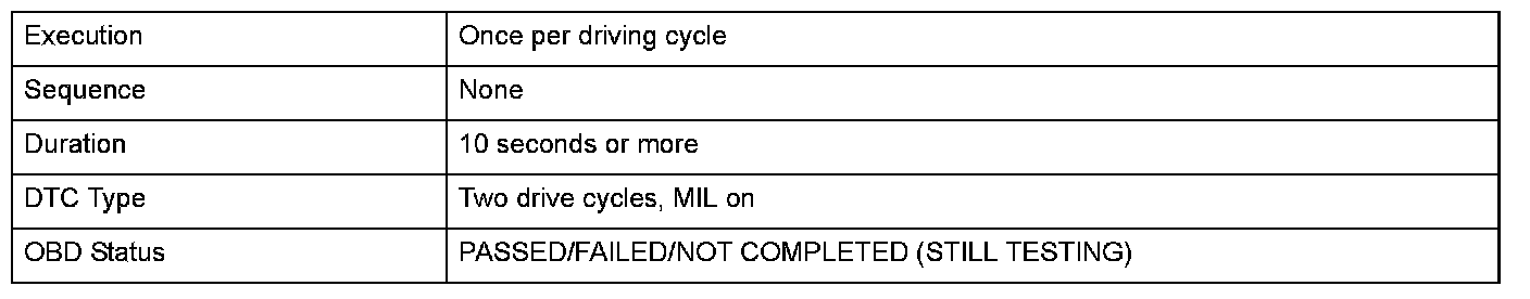 Monitor Execution, Sequence, Duration, DTC Type, OBD Status