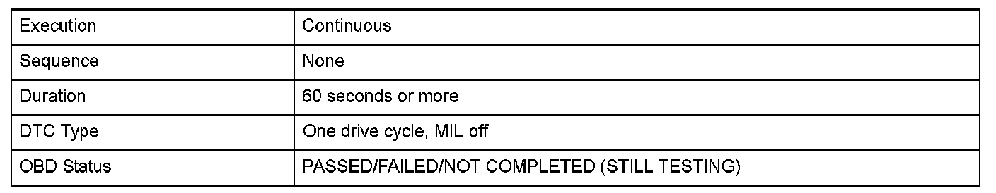 Monitor Execution, Sequence, Duration, DTC Type, OBD Status