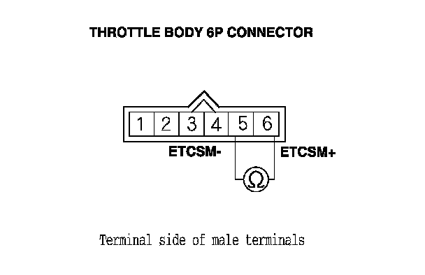 10. At the throttle body side, measure the resistance between throttle body 6P connector terminals No. 5 and No. 6 with the throttle fully closed.