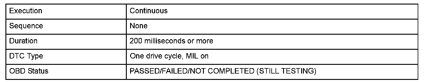 Monitor Execution, Sequence, Duration, DTC Type, OBD Status