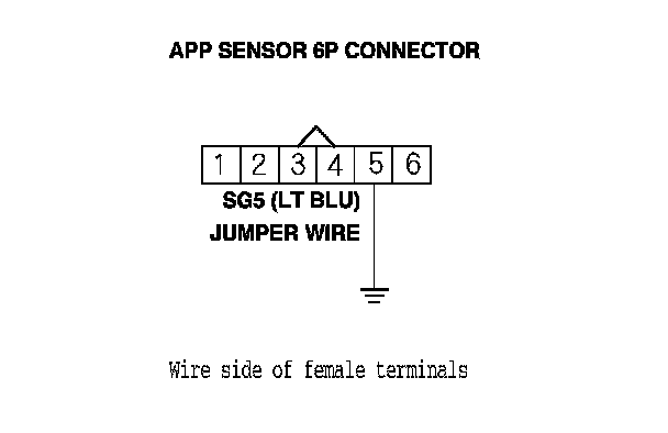 10. Connect APP sensor 6P connector terminal No. 5 to body ground with a jumper wire.