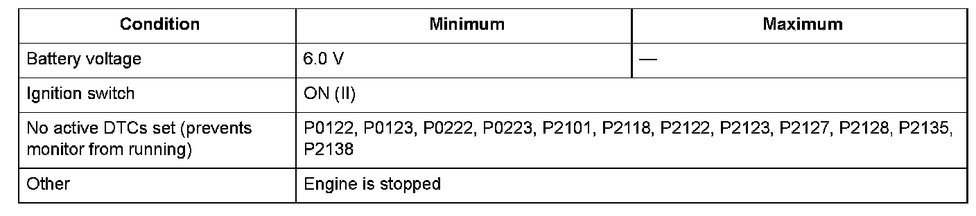 - The registration of the throttle valve fully closed position is not completed within a predetermined time after the ignition switch is turned to ON (II).