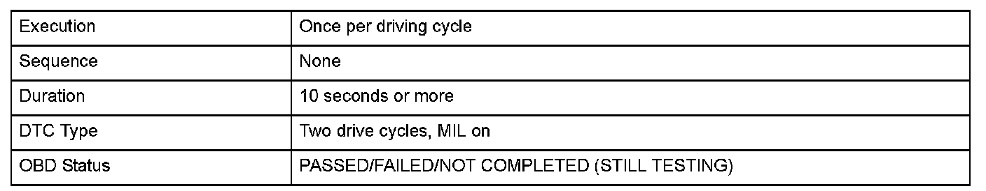 Monitor Execution, Sequence, Duration, DTC Type, OBD Status