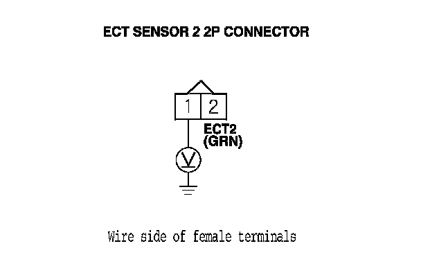 11. Measure the voltage between ECT sensor 2 2P connector terminal No. 1 and body ground.