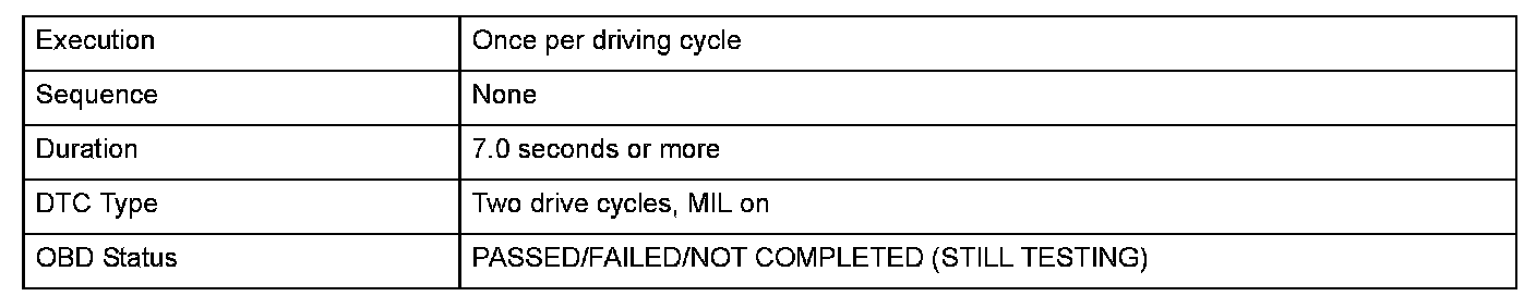 Monitor Execution, Sequence, Duration, DTC Type, OBD Status