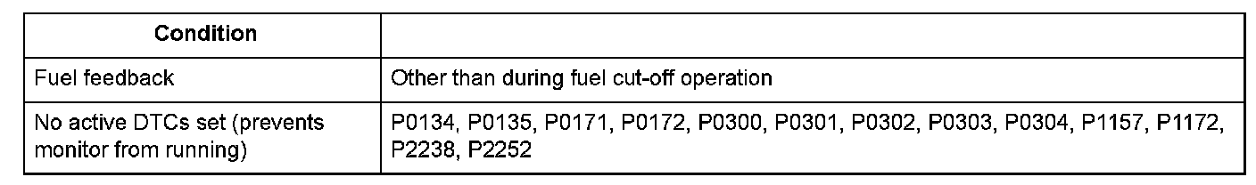 Conditions for setting the DTC
