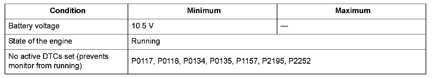 The air/fuel ratio (A/F) sensor (sensor 1) is installed in the exhaust system and detects oxygen content in the exhaust gas. The A/F sensor (sensor 1) transmits a signal to the engine control module (ECM)/powertrain control module (PCM). A heater for the sensor element is embedded in the A/F sensor (sensor 1). It heats the sensor to stabilize and speed up the detection of oxygen content. The increase in current through the heater levels off as the voltage applied to the electrode reaches a certain range because the amount of oxygen that goes through the diffusion layer is limited. The current is proportional to the oxygen content in the exhaust gas, so the air/fuel ratio is detected by the measurement of the current. The ECM/PCM compares the set target air/fuel ratio to the detected air/fuel ratio and controls the fuel injection duration. If the A/F sensor (sensor 1) voltage is low, the air/fuel ratio is lean, and the ECM/PCM uses air/fuel ratio feedback control to issue a Rich command. If the A/F sensor (sensor 1) voltage is high, the air/fuel ratio is rich, and the ECM/PCM uses air/fuel ratio feedback control to issue a Lean command. If the element is not activated or the ECM/PCM terminal voltage is a set value for a set time when power is applied to the A/F sensor (sensor 1) heater, a malfunction is detected and a DTC is stored.