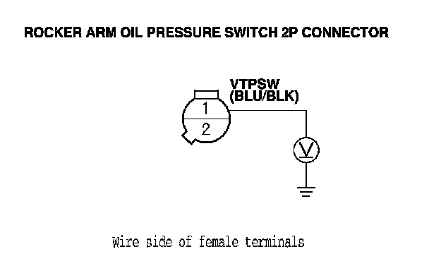 10. Measure the voltage between rocker arm oil pressure switch 2P connector terminal No. 1 and body ground.