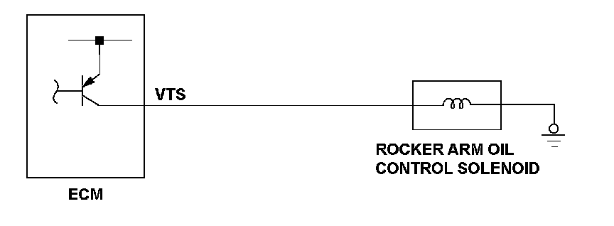 The VTEC system activates the rocker arm oil control solenoid by command from the engine control module (ECM), and it charges/discharges the hydraulic circuit of the VTEC mechanism that switches valve timing between low and high. If the return signal is ON (high) when the ECM outputs the OFF (low) signal to the rocker arm oil control solenoid, the ECM detects a malfunction and stores a DTC.