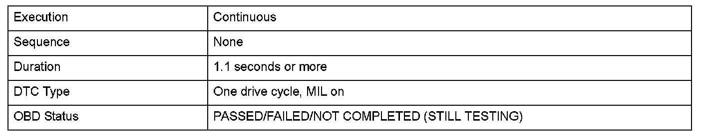 Monitor Execution, Sequence, Duration, DTC Type, OBD Status