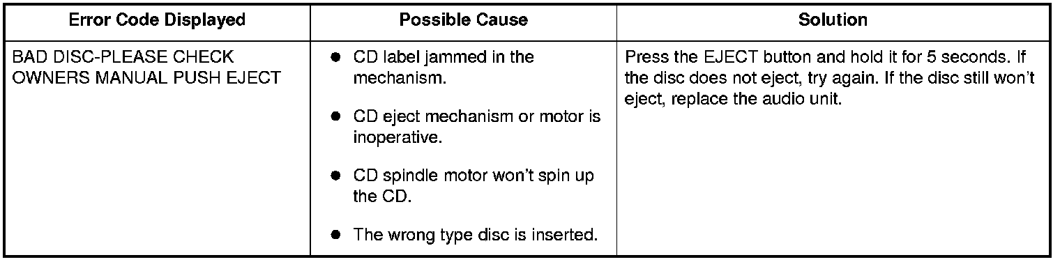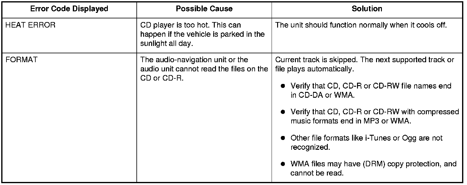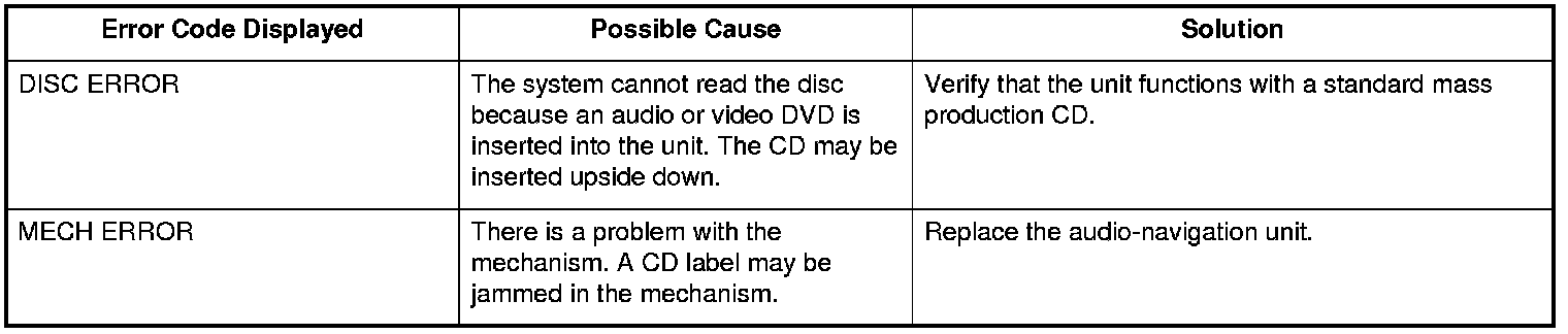 CD Error Codes (without navigation)
