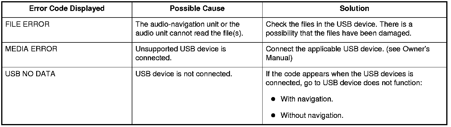 Audio System Error Codes